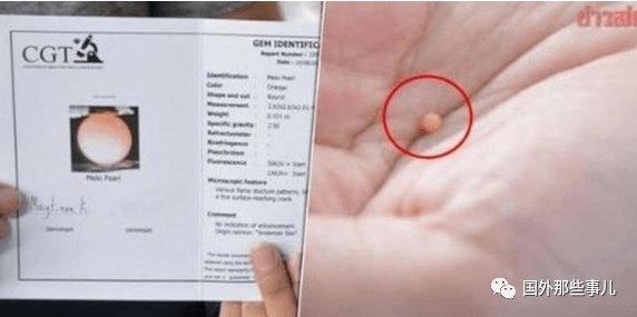 之后,他们又将这颗珍珠送去鉴定,确定的确是一颗美乐珠。虽然只有米粒大小,但是估价超过100万泰铢(约合人民币19万元)。这对情侣表示,他们要将这个它保存在家中,不会拿来出售。