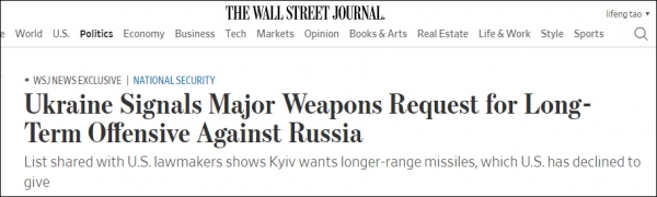 美国《华尔街日报》当地时间12日称,乌克兰向美国提出了新的武器供应请求,清单列出了29种武器系统和弹药,包括华盛顿至今拒绝提供的ATACMS。