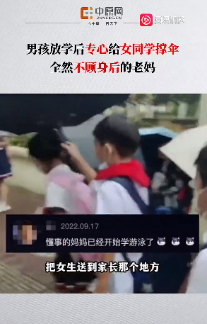 他好像完全没有听到,专心给女同学撑伞,护送女同学到她家长面前。张女士表示,当时觉得好气又好笑,就一直在后面跟着。
