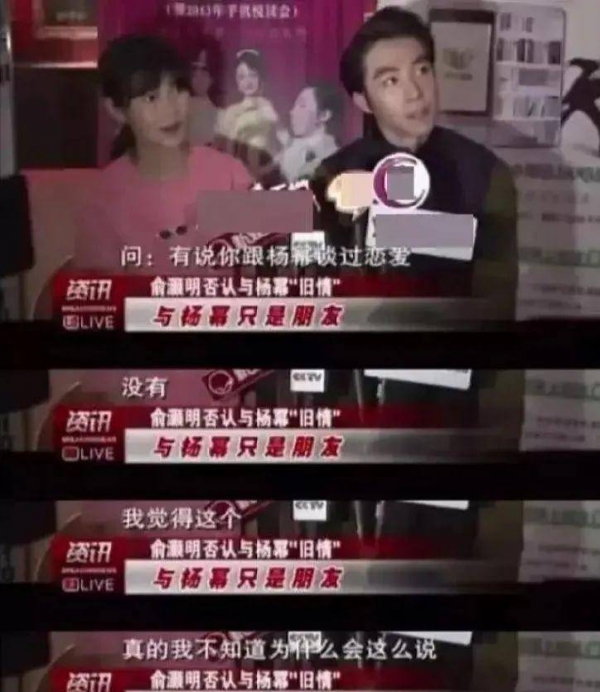出事前,俞灏明并未公开女友,但不少网友爆料他一直和杨幂在一起。虽然余昊明后来在接受采访时否认了绯闻,但至少他的感情生活还是很感人的。