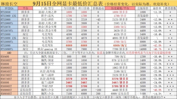 网友整理显卡价格 图/显卡吧@琳琅长空