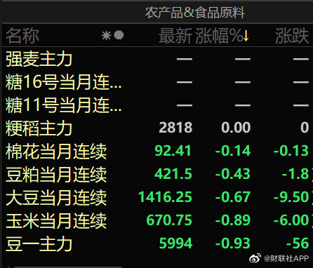 燃料油跌超7%,棕榈油、原油跌超6%,PTA跌超5%,短纤、乙二醇跌超4%,豆油、沪银等跌逾3%,菜籽油、沪铜等跌超2%,沥青、尿素等跌超1%,鸡蛋、沪金等小幅下跌;仅纯碱、豆二等少数品种上涨。