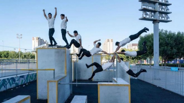 "跑酷运动没有门槛,四岁以上就可以开始训练。目前,我知道年纪最大的学员是一位60岁的跑酷阿姨,"张艺杰分享道。