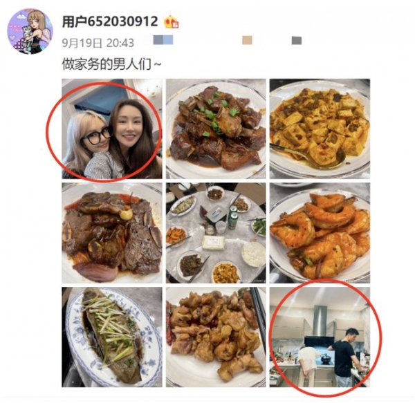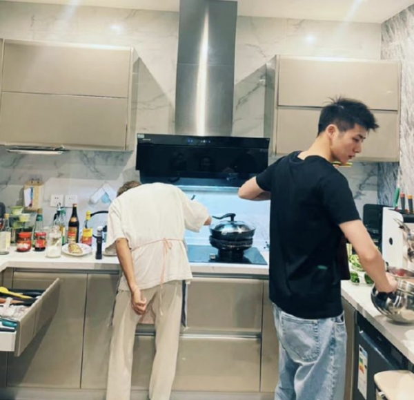 首图是她和大王的自拍,尾图是大王老公和另一个白衣男子在厨房忙活的身影↓