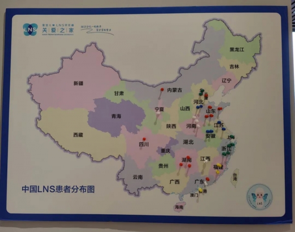 "蚕宝儿"根据成员分布情况所制中国LNS患者分布图。 新京报记者 吴小飞 摄