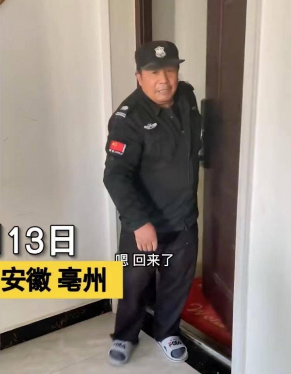 坐标安徽亳州,这是一处普通的城市居民家庭,门口铺着大红的地垫,一位年约5旬,个头不高,身材敦壮的老人,穿着一身门卫制服,他换上拖鞋,轻轻地打开了自家大门。