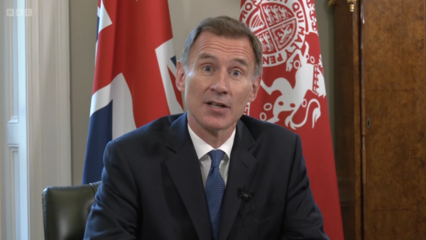 英国新财政大臣亨特17日发表讲话 BBC视频截图