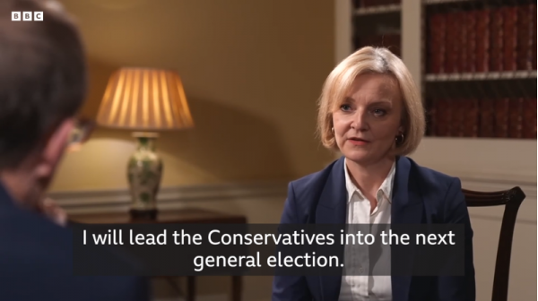 特拉斯接受BBC采访,坚称将带领保守党参加下届大选 视频截图