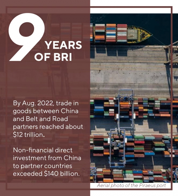 在贸易方面,中国同样贡献良多。截至2022年8月,中国与"一带一路"合作伙伴之间的货物贸易额达到约12万亿美元。中国对伙伴国非金融类直接投资超过1400亿美元。