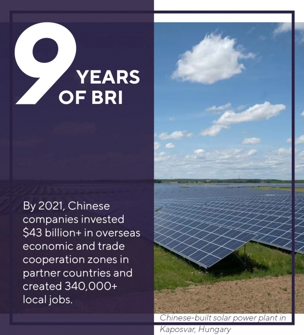 华春莹最后指出,截至2021年,中国企业在伙伴国家境外经贸合作区投资430多亿美元,为当地创造了34万多个就业岗位。