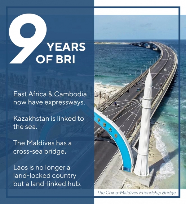 (观察者网讯)10月19日晚,中国外交部部长助理、发言人华春莹在推特账号发布图文,重点回顾了"一带一路"倡议在过去9年中所取得的重大成就。