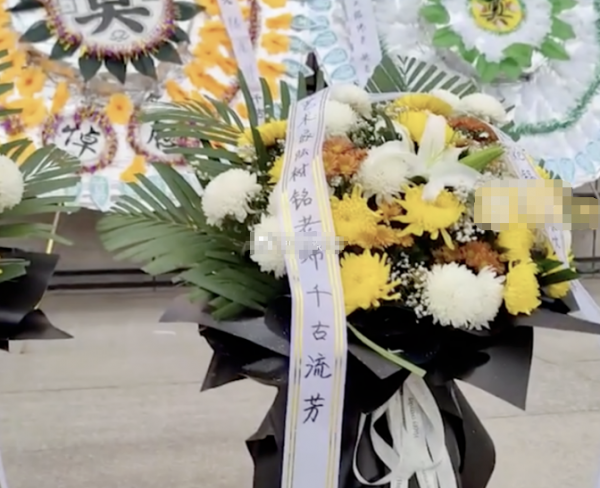 可是,3日早上才9点左右,西安殡仪馆"咸宁宫"的门口已聚集着大批的市民,自发前来送别陆树铭最后一程。画面中,有些民众手持小白花、戴着口罩,排队守在门前、神情肃穆,人群大多以中老年朋友为主;外厅两侧摆满花圈与花牌,上写"艺术家陆树铭老师千古流芳"!