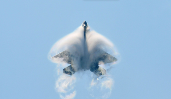 在飞行器执行超音速飞行任务的时候,会产生高的压力波,传到地面上形成如同雷鸣的爆炸声,并且在其尾部会形成圆锥形的音爆云。