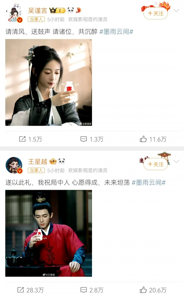 首度收官之际,作为男女主的吴谨言和王星越在6月23日也分别发了关于剧的初次收官动态。