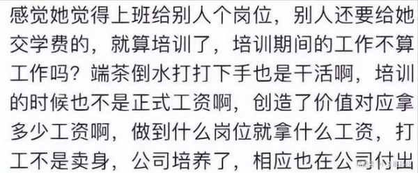 网友纷纷表示不能接受,员工在公司工作也是付出了相应劳动,又不是把自己卖身给了公司,任何一家公司招聘员工都会进行必要的岗前培训,员工学的越多越好,就越能为公司创造更多的利润,拿钱干活这本就是一项互惠互利的事情,凭什么员工走了还要赔偿你的钱,这签的到底是劳动协议还是还是卖身契?更有人反问董明珠,我读了那么多年的书毕业了就来给你打工,你是不是也要赔偿我的学费呢?
