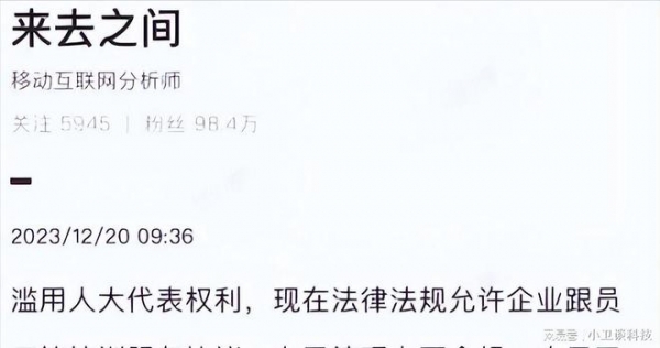 他还提到现在法律法规允许企业和员工签培训服务协议,约定服务期限,自己管理尚不合规,吃亏了要么就骂员工要么就是赖法律,言下之意就是董明珠不懂法,连国家已经出台相关规定都不知道,更不会管理公司,出了问题只会怪员工怪法律不完善。但董明珠却没有想过一个问题,那就是员工为什么会走,如果一家单位真的想留住人,那就应该从福利待遇以及人文关怀等方面考虑,而不是用培训费倒逼员工委曲求全。
