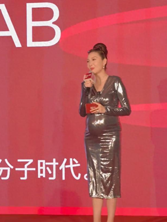 虽然挺着大肚子,她还是坚持待在电视台,主持了一场关键的商务活动。