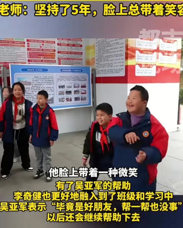 江西宜春市铜鼓县第三小学有一个小朋友叫做吴亚军,只因老师的一句嘱托,他就照顾了那位特殊的同学五年。