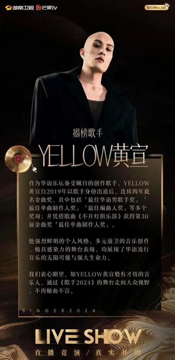 主打"全程直播、真唱不修音"的歌手自上周首播之后持续引爆话题,在昨晚迎来的第二期直播爆上热搜第一,金曲奖歌手黄宣和民族摇滚乐队杭盖作为首轮揭榜选手强势踢馆