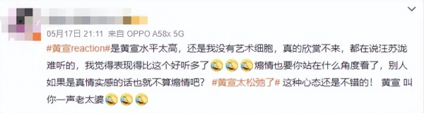 除此之外黄宣更是天选reaction人,看首期歌手舞台时他的反应是这样的,在听到自己踢馆成功时,镜头切到黄宣的瞬间差点笑得摔个跟头,网友们直接喊话导演组,能不能给个单独机位,光头哥太会做节目了