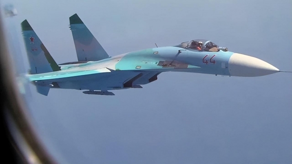 (以往苏-27拦截美军飞机的画面)