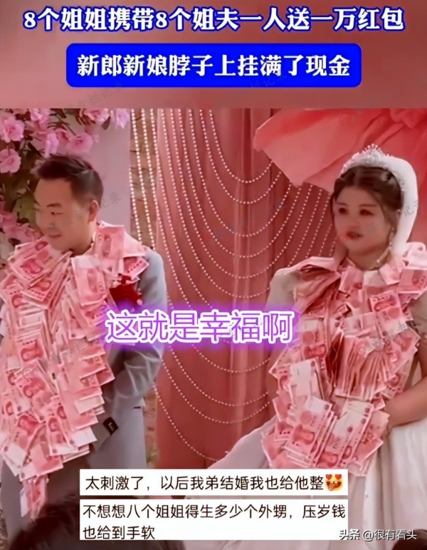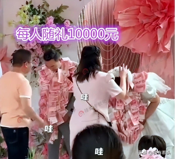 也有人说,随礼挂在脖子上,这似乎在炫富,有必要这样吗,就算是结婚,也不能这样炫耀,结个婚好像是用钱买来的一样!