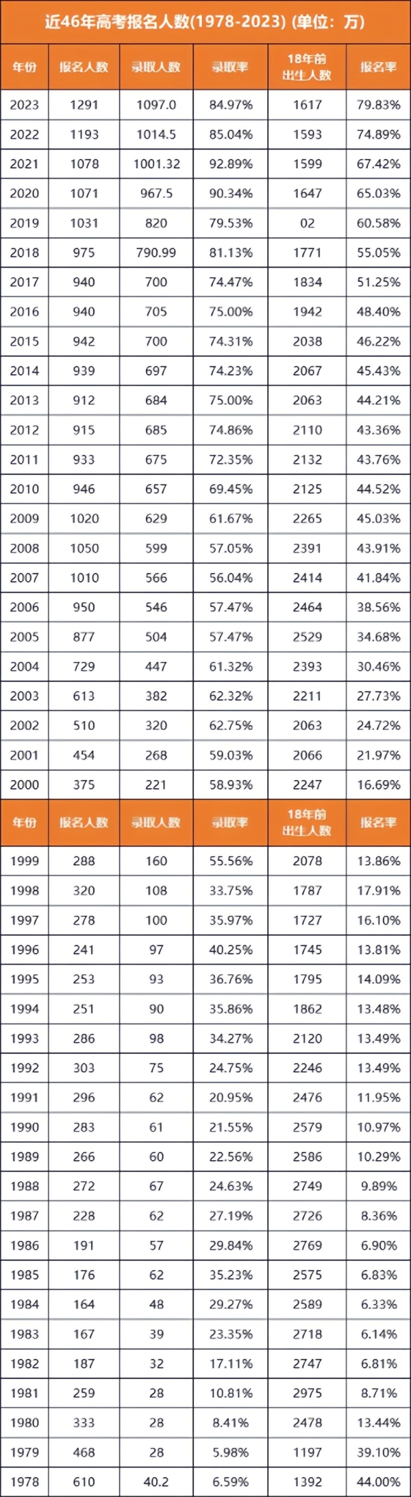 这种比例,基本上是史无前例的,今年可以说是考生与录取人数比最大的一年,这也意味着今年的高考是真的难。
