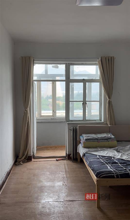 记者注意到,该房源户型也是两室一厅,房内只进行了简装,地上贴的地板纸已经翘边鼓包,入住需要重新装修。进门客厅面积较小,房主只放了一个圆桌。另外两个卧室面积稍大,从主卧窗户向外看,可以看到不远处有工厂的大烟囱。据当地人介绍,大烟囱所在的厂子以前是电厂,现在主要用来给城内供热。