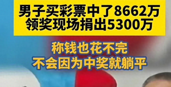 先是江西快乐8第2022046期开出头奖2.2亿元,结果兑奖期限届满,堪称"精算师"的彩民还没等去领取所有奖金呢,河南濮阳又出了明明可以成为感动中国2023年度人物的大善人,却偏偏去做隐姓埋名的无名英雄:中8662万元奖金,无偿捐出5300万元给体育发展基金会,而且身份保密,不接受任何媒体采访。