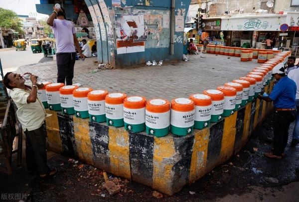 很多人也会选择跳上洒水车来进行降温,除了这些降温的方法以外,印度街头的冰块也是随处可见,还有就是印度的民众经常会自制空调,称其为泥罐空调。
