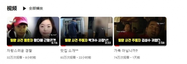 他每天只发布一个视频,内容也很单一,就是在曝光一些普通人的身份和生活。不过这些普通人身上都有同一个标签--密阳轮奸案的加害者。