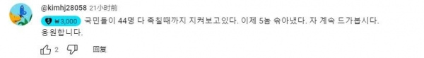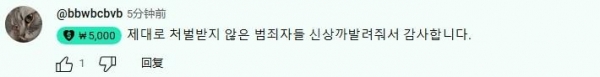 还有不少网友看到视频后,被@norock09的勇气感动,纷纷打赏支持,从2000韩元到50万韩元不等: