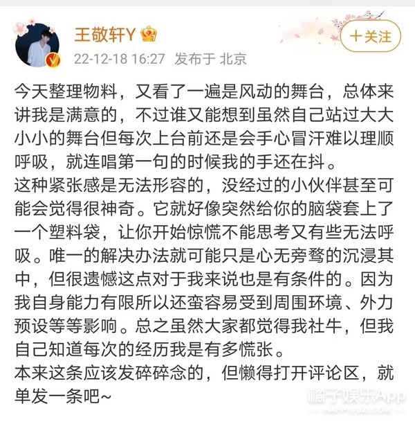 王敬轩彼时发了一条微博,