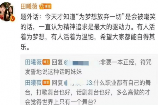 田曦薇也试过走"内娱活人"的路线,年初在某场红毯采访上嘲笑张艺兴,却暴露了真素质,事情发酵后,又发文假正经,口碑崩坏不少。