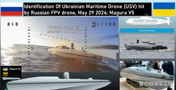 俄军此次还首次使用了FPV无人机进行无人艇拦截,展示了黑海舰队一艘护卫舰成功发射FPV自杀式穿越机拦截无人艇的画面。这是自俄乌战争爆发以来,俄军首次从舰艇上发射FPV自杀式穿越机,并成功摧毁无人自爆艇。