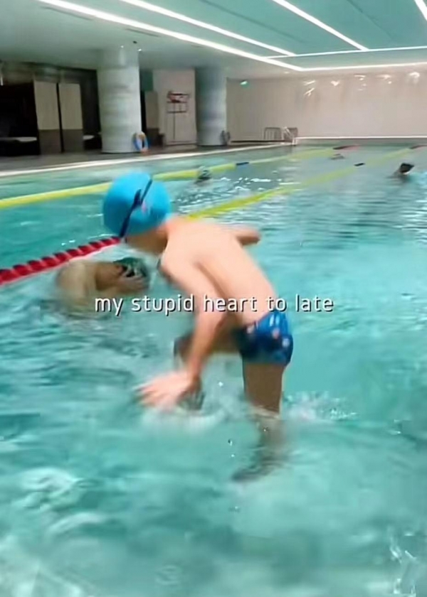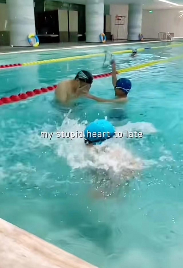 两个小家伙一会儿以各种姿势跳入水中,一会儿又在水里翻跟头,看得出来他们的水性非常好,在泳池里简直如鱼得水,因此还被不少网友调侃,称他们像两个可爱的"水猴子"。