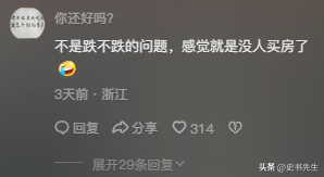 评论区也有不少网友对于"房价大跌"这个说法持怀疑态度,在他们看来,和自己的工资比起来,现在即使跌了23%也依然足以昂贵,甚至有人说: