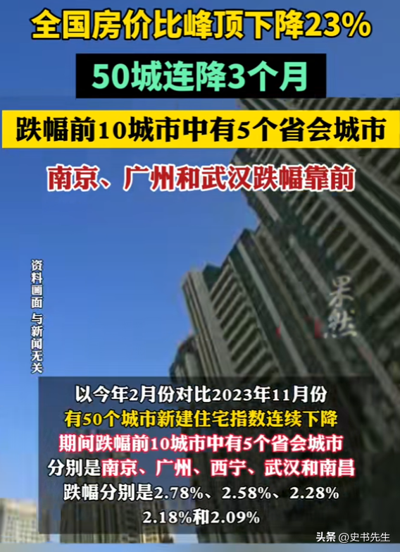 根据国家统计局近期公布的数据来看,多年来一直困扰广大老百姓的房价,的确是在不断下跌的,就连南京、广州等省会城市,房价跌幅也十分明显。