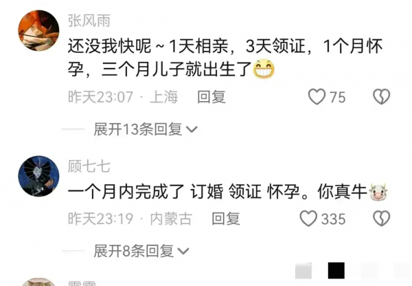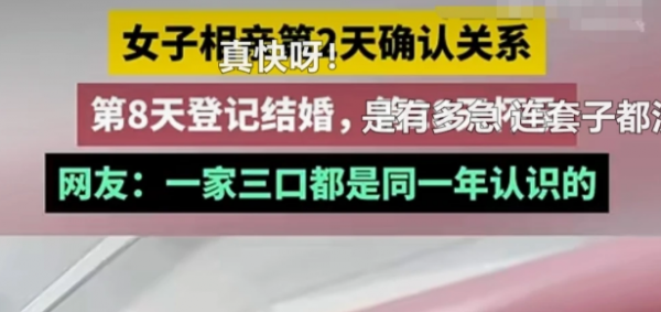 女子相亲第2天确认关系,第8天登记结婚,第28天怀孕,网友:一家三口都是同一年认识的