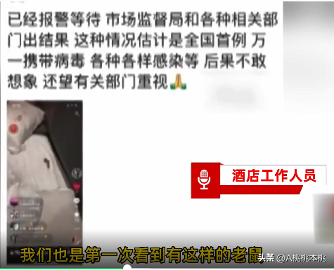 近些年来,关于酒店卫生问题,一直是个热门话题,有传言酒店的工作人员打扫马桶卫生的时候,用的是洁面台的面巾擦拭。先且不论传言真假,2017年12月18日就有绍兴某酒店入住的客人称,有老鼠窜到自己的床头偷吃东西。类似于此类事件频频发生,希望市场相关监管部门能引起高度重视。