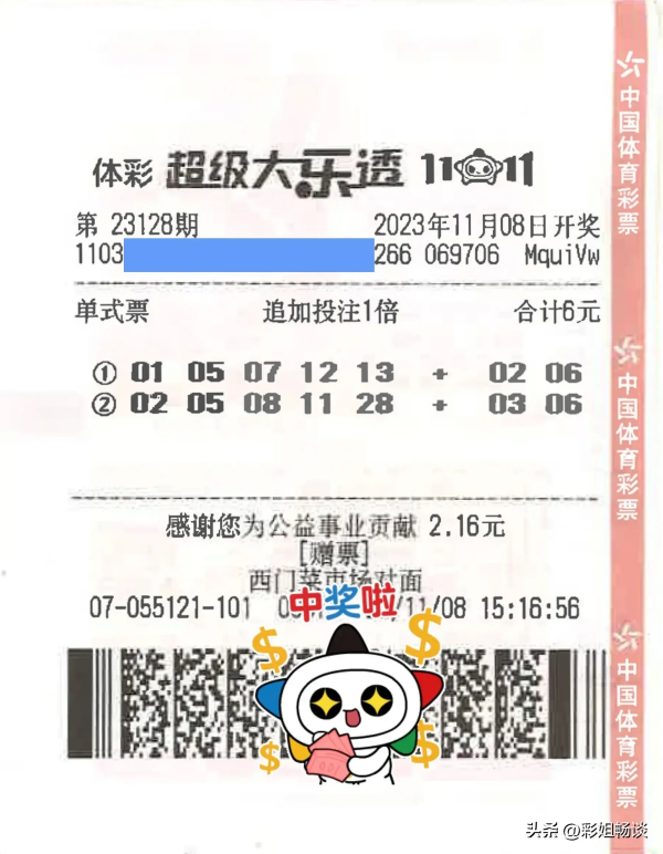 网传一位来自来自浙江金华的菜市场摊主,击中大乐透1800万巨奖,竟然一分钱没花。原因是这张中奖彩票,是一张"赠票"!