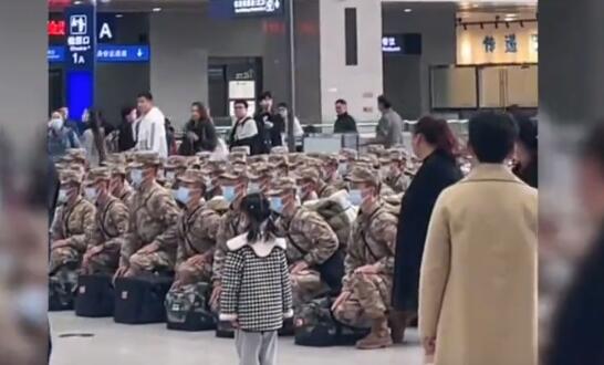 解放军在车站内列队下蹲 视频中三个主角构成"国泰民安"图!