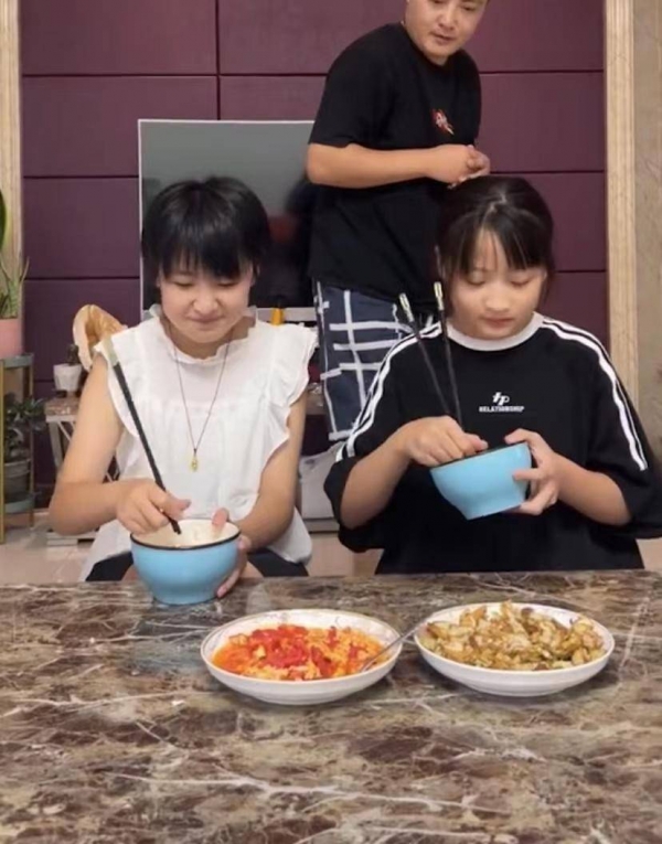 看着俩女儿依言照做,用手握住筷子底端地方,爸爸这才放心,满意地离去。