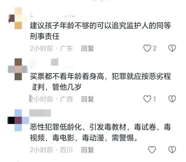 1. "这种残忍的犯罪行为简直令人发指!无论年龄大小,犯下如此恶劣罪行的人都应该受到应有的惩罚,不能姑息!"