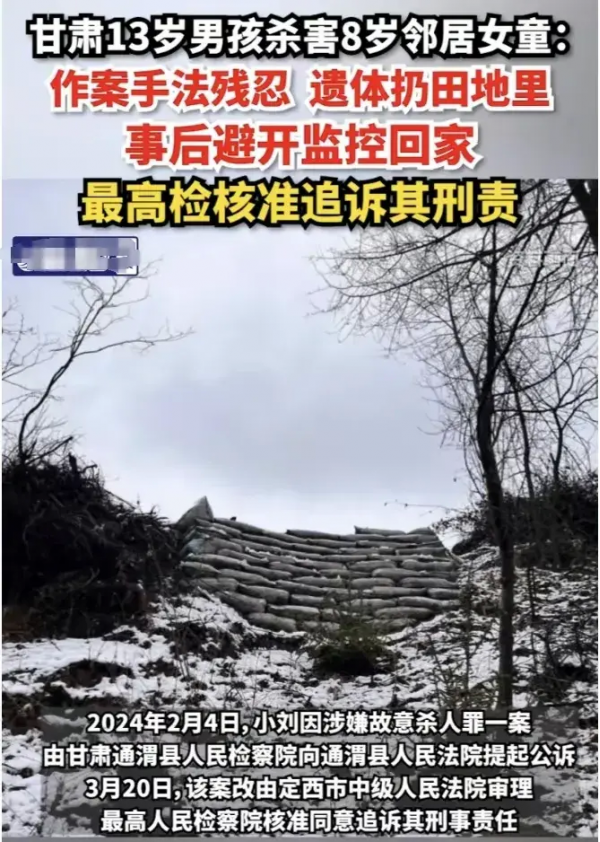 3月28日,甘肃13岁男孩杀害8岁女孩的案子,再次被受害者父亲披露细节。根据记者对女孩父亲的采访,女孩父亲表示:自己的女儿的遗体是在一处荒僻的田地被发现的,发现的时候,女儿的脖子几乎被割掉了,胸口也被人用刀子划开,现场惨不忍睹。
