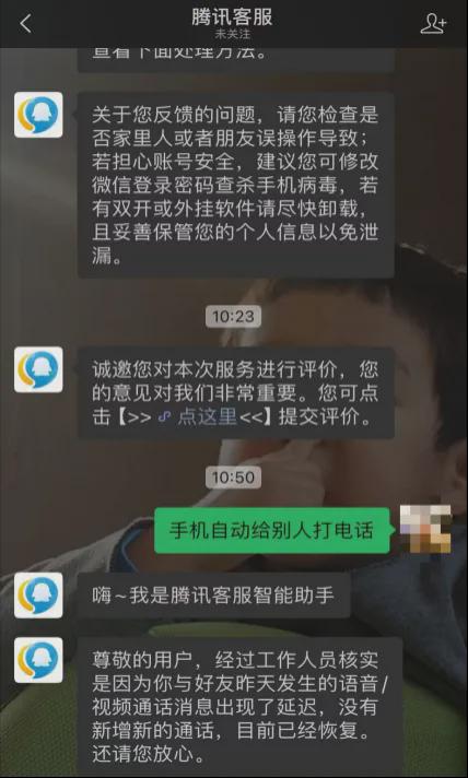 6月8日,记者向微信手机智能客服反映情况,手机智能客服回应称,"要检查是否家里人或者朋友误操作导致;若担心账号安全,建议您可修改微信登录密码查杀手机病毒,若有双开或外挂软件请尽快卸载,且妥善保管您的个人信息以免泄漏。"