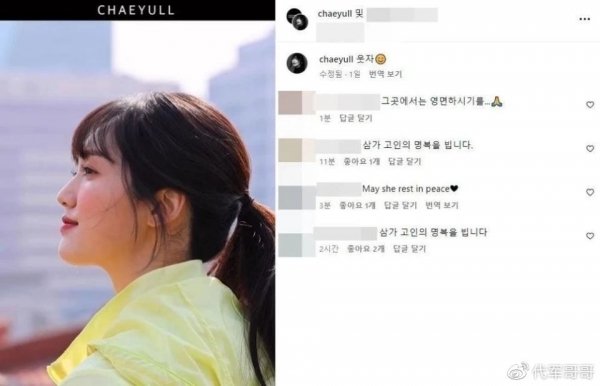 随后,她的经纪公司发文证实了这个消息,并形容她是一位内心善良又努力的人,看到彩律去世的消息时倍感震惊。并称家属希望葬礼采取非公开形式进行。经纪公司还希望大家祈祷祝福,让郑演员能够在温暖的地方安息,也恳求大家不要散播谣言,也不要过度推测。公司CEO甚至在接受采访时忍不住哭了出来。
