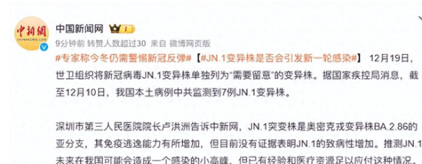 新冠病毒变异株JN.1近期在多国迅速传播,目前我国本地已监测到7例JN.1变异株,该消息在社交媒体上备受关注。