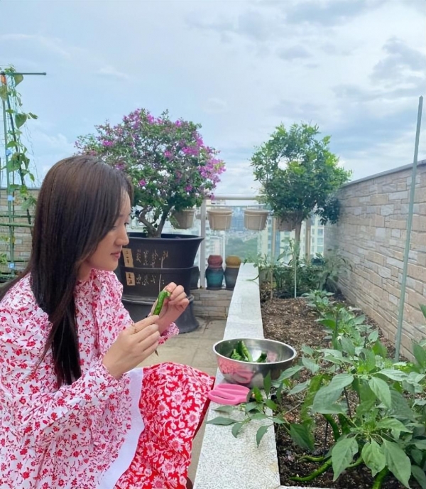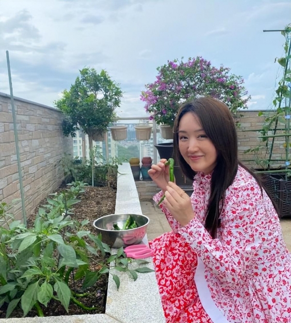 当然,杨钰莹不仅是美女还是有钱人,所以才可将自家的露台打造成钟情的花园菜园。