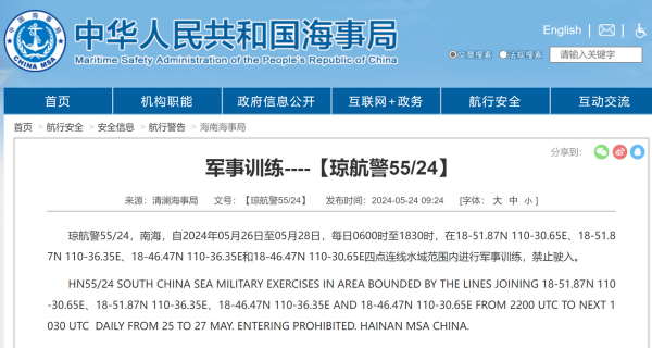但即便如此,我们也不会让他们称心如意。在东部战区演习结束后,南部战区的演习就无缝衔接上了。中国海警局公布从5月26日至28日,南部战区将在南海特定海域进行军事训练。海警局还专门提醒所有无关船只不得靠近,从军事训练区域看,在海南岛以南,三沙市西北方向。